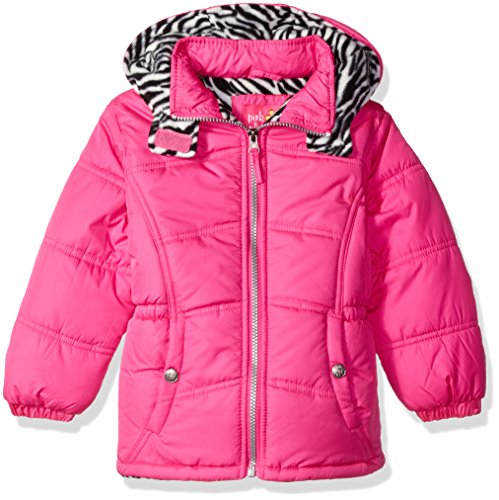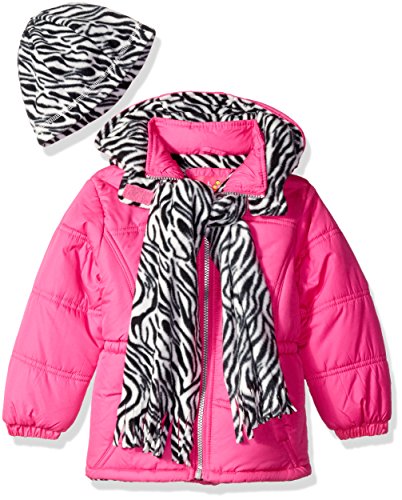 Pink Platinum Big Girls' Puffer Jacket with Zebra Print Lining and Accessories, Bright Pink, 14/16