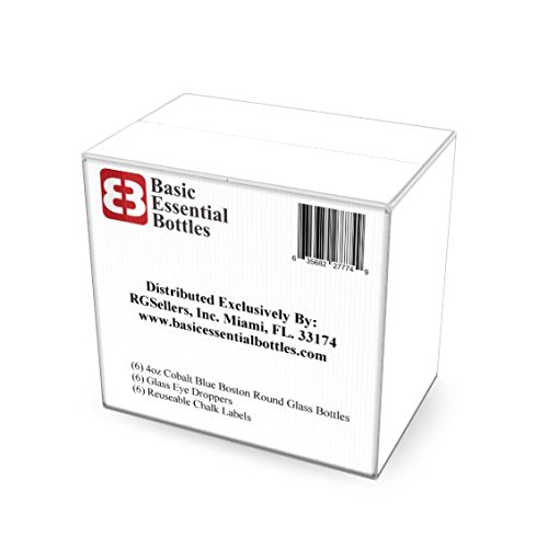 Set of 6, 4oz Cobalt Blue Glass bottles for use with aromatherapy, essential oils or any other DIY project for which glass dropper bottles can be used.