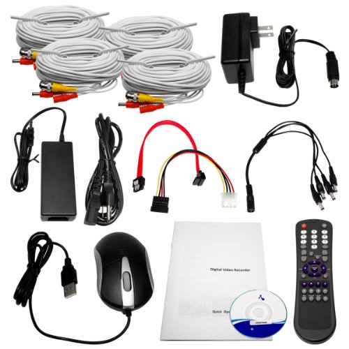 -. Feature : 4 CH Real-time Recording and HD Playback / H.264 Dual-Stream Video Compression / 500GB HDD Included / 4x 520TVL Outdoor/Indoor Cameras / 3.6mm Fixed Lens and 24 IR LEDs up to 50ft Distance