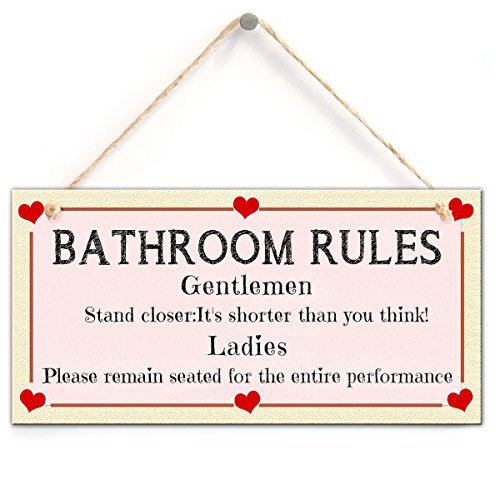 Bathroom Sign- Bathroom Rules Hanging Sign with Little Hearts Decor Perfect for Home Decor (5" X 10")