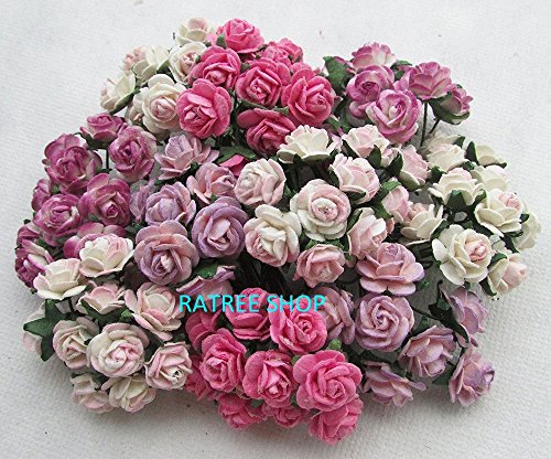 100 pcs mini Rose mixed Pink color Mulberry Paper Flower 10 mm scrapbooking wedding doll house supplies card, Products From Thailand By...RATREE SHOP.