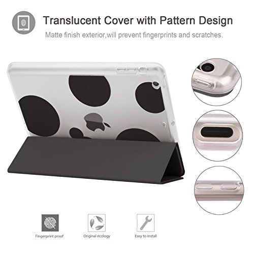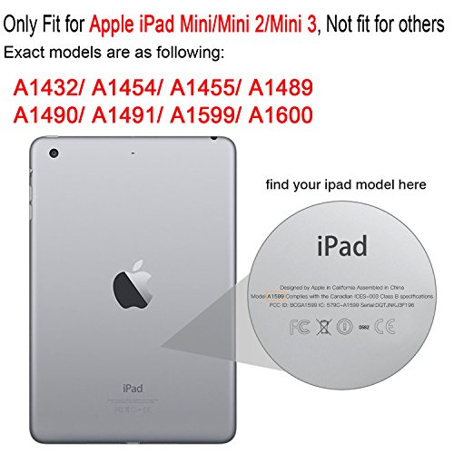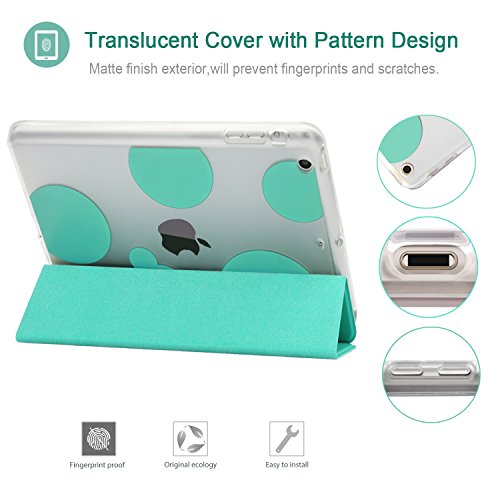 -. Feature : Compatible with ipad mini 1,iPad mini 2,iPad mini 3 only, not for iPad Mini 4 / Open the Smart Cover, and your device magically wakes up. Close it, and your device automatically goes to sleep / The semi-transparent back with bubble pattern protects the device from scratches and fingerP.R.Ints / Premium PU leather cover and TPU back over to protect your device from shock,fingerP.R.Ints and scratches.Microfiber lining inside helps keep your display clean / Tri-fold design with strong magnet supports sturdy stand function in a comfortable viewing or writing position