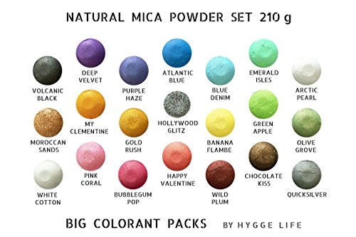 - THE ULTIMATE MICA POWDER SET. Enjoy making your own bath bombs and soaps? Ever had to hunt around for the perfect set of colors? Remove the hassle with our carefully-selected pearly coloring dyes. Our colored powders and glitter shimmer and sparkle, and are perfect for personal art projects like candle, soap, slime, epoxy resin, jewelry, acrylic paint, watercolor, and polymer clay making.