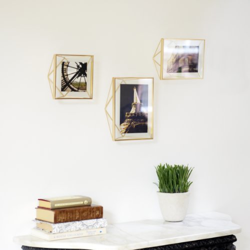 - Feature : Prisma Photo Display by Umbra / Made of brass wire / Brass wire floats image between two pieces of glass; 3 individual sizes 4x4", 4x6" and 5x7"; can be mounted on the wall or used as table decor / 4x6 inch opening; outside dimensions of 6 Inch by 8 Inch by 3 Inch / Designed by Sung Wook Park