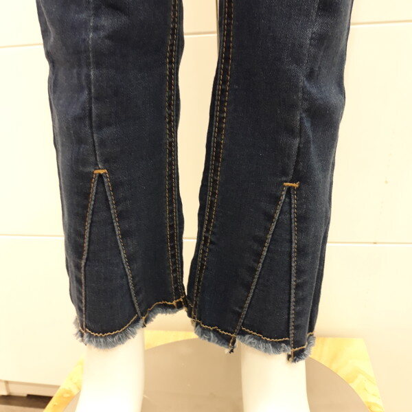 밑단삼각 무배색이 포인트인 트랜디한 데님팬츠.밑단 기장차이가 있는 세미부츠컷 핏으로 날씬하고 다리가 길어보임