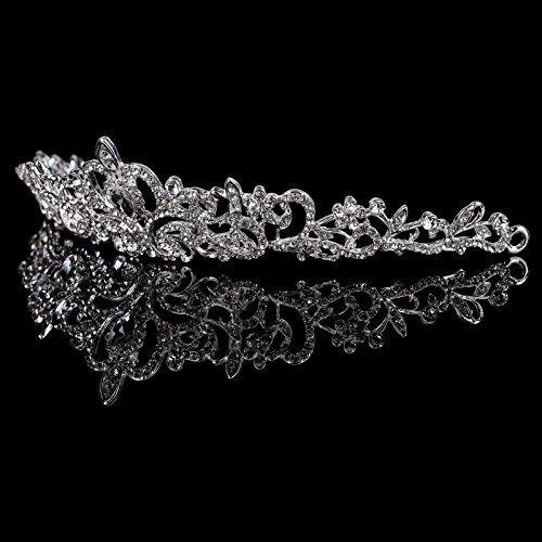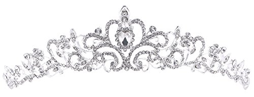 -. Feature : Durable hard silver alloy & rhinestones / Beautiful tiara encrusted with sparkling crystals / Stunning stylish & delicate accents make you stand out / Romantic hair comb design will look beautiful w/ any hairstyle / Perfect hair piece accessory for weddings, proms, dances, and other special occasions; Please check below Product Description for measurements