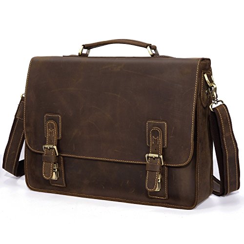 -. Title : Kattee Vintage Genuine Leather Briefcase Messenger Bag, Fit 16" Laptop