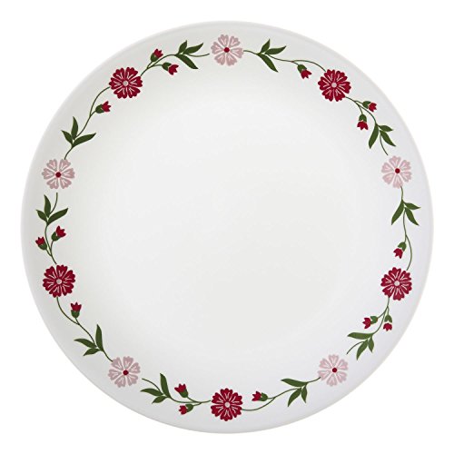 Studio : World Kitchen Publisher : World Kitchen Product Description Think pink! This cheery Corelle plate lets you enjoy the colors of spring all year round. Tiny red buds, along with alternating pink and red blooms, adorn the grass-green vines that make their way around the plate's rim. You'll love the convenience of Corelle dinnerware - it's easy to use and easy to clean. 0