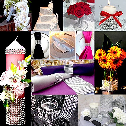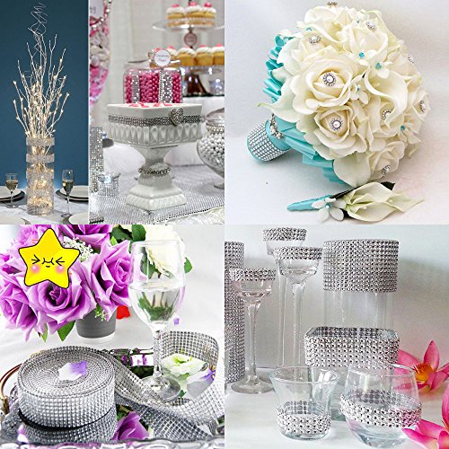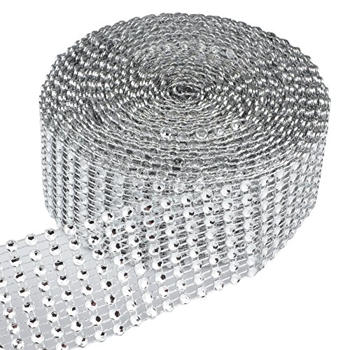 SUBANG 8 Row 10 Yard Acrylic Rhinestone Diamond Ribbon Sparkling for Wedding Cakes, Birthday Decorations, Baby Shower Events Party Decorations and Other Crafts Projects (Silver)