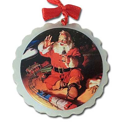 -. Binding : Kitchen -. Brand : Coca-Cola -. Color : White/off White -. EAN : 0752203039621 -. Feature : From the popular collection of wooden Coca-Cola ornaments comes this nostalgic holiday Christmas ornament sure to please every Coke collector / With beautiful detail, this Coca-Cola Santa bottle cap ornament features Haddon Sundblom's favorite image of Santa with a train and helicopter / Size 3 inches diameter in size First issued in 2011 and reissued for 2012 / These treasured favorite Coca-Cola ornaments make great keepsake holiday tree ornaments! Makes a great gift! / Licensed Coca-Cola ornament is new in original packaging from 2CollectCola -. Label : Sunbelt Marketing -. Manufacturer : Sunbelt Marketing -. MPN : 4930-33 -. NumberOfItems : 1 -. PackageQuantity : 1 -. PartNumber : 4930-33 -. ProductGroup : Home -. ProductTypeName : HOME -. Publisher : Sunbelt Marketing -. Size : One Size -. Studio : Sunbelt Marketing -. Title : Retro Coca Cola Wood Santa Crown Hanging Ornament -. UPC : 752203039621