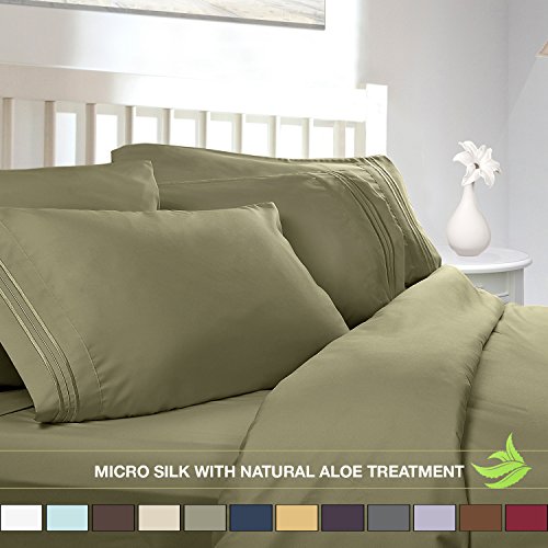 Luxury Bed Sheet Set - Soft MICRO SILK Sheets - King Size, Sage Green - with Pure Natural ALOE VERA Skin Soothing Moisturizing Treatment - Healthy Calming Properties Will Make You Have A Relaxed and Refreshed Sleep - Highest Quality with Strong Stitching