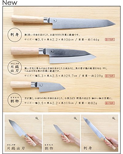 【비고】칼이 얇고, 상황변화에 따라 즉시 대처하는 인몸을 살렸다, 작은 물고기 잘 처리해 야채의 가죽(껍질) 벗겨 세세한 세공 작업에.
