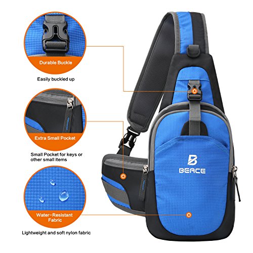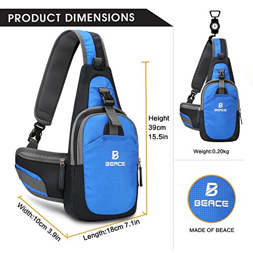 -. Feature : MULTIPLE STORAGE PURPOSE SLING BAG:Three compartments(Include two large zippered compartments and small open compartment). Larger zippered compartment can hold iPad mini(the large can hold iPad), Two 8 ounces bottles, small camera, Samsung Tab or Tablets(the standard up to 8 inch, the large up to 12.9 inch). Smaller zippered compartment for power bank, iphone7, iphone7 plus, Bank card. Small open compartment can hold some travel sundries such as small notebook, iPhone7, iPhone7 plus. / EXTRA SMALL SIDE POCKET: This sling backpack have new design. It increase a small side pocket the small side pocket is convenient for people to carry small some small items, such as keys, tissue, compass. Durable buckle and zipper also Improve the service life of Unbalance Backpack. / PADDED AND BREATHABLE AND Flexible: Flexible satchel shoulder strap can be adjust loose or tight. Perfect fit for your body. Breathable shaped padded mesh shoulder straps and mesh back panel is extremely comfortable and lightweight. It will release heat rather than accumulate. / EXCELLENT NYLON MATERIAL: Made from high quality tear-resistant and water-resistant nylon fabric. Durable and lightweight outdoor sling bag. Suitable for Cycling, Hiking, Camping, Climbing, Traveling, Casual, Working out. Beace Sling bag have two size. The large size:16.6(H)*10.2(L)*5.1(W)Inch. The standard:15.5(H)*7.1(L)*3.9(W)Inch. / ALL-PURPOSED FASHION DAYPACK: Fashionable bag can be used for chest bag, sling bag, travel bag, crossbody backpack, shoulder backpack,Casual Daypack. Keep your hands free but without the bulk of a regular backpack.