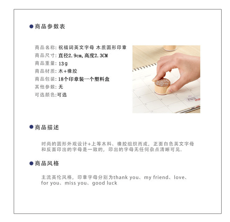 韩国圆形标签祝福语英文字母感谢语复古可爱 相册装饰木质印章