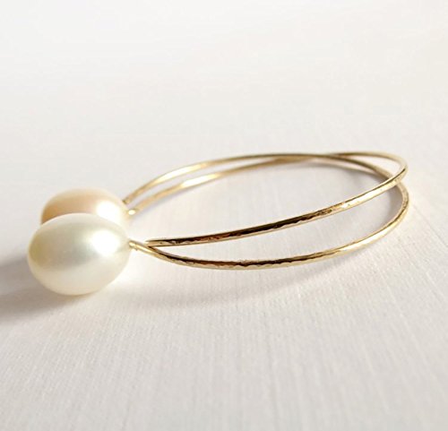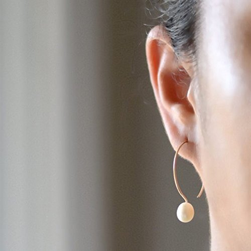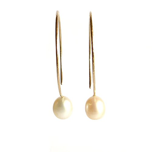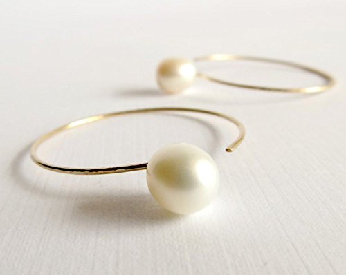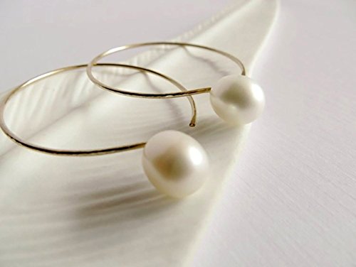-. Title : White cultured freshwater pearl hoop earrings