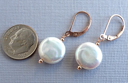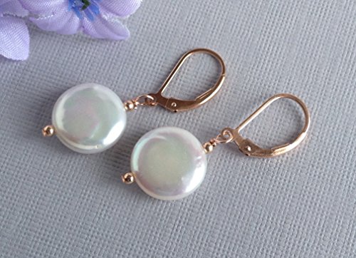 -. Title : 14k Rose Gold Filled Leverback Earrings with Coin Pearls