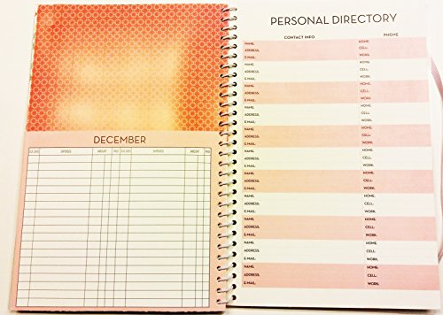 -. Feature : Home Finance Bill Organizer Spiral Bound / 2015, 2016 & 2017 Calendars / Expense Log with pockets for each month / Plastic protective cover with secure band closure / Personal directory to keep important contact information