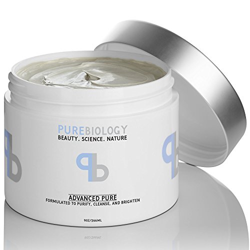 Pure Biology Clay Face Mask, 9 oz - Deep Pore Cleanser For Reduction in Pores, Spots, Blackheads & Acne – Infused w/ Pea Peptide Extract to Instantly...
