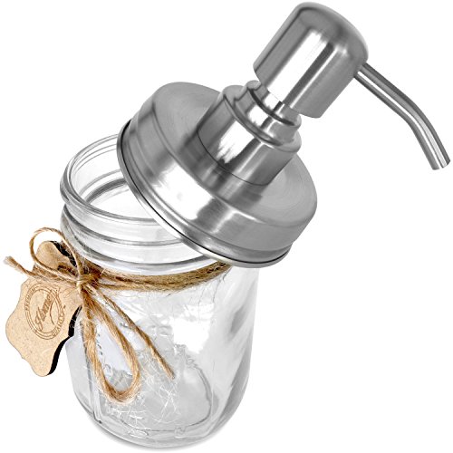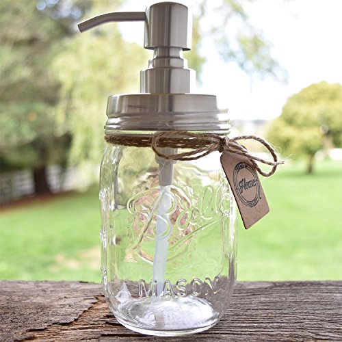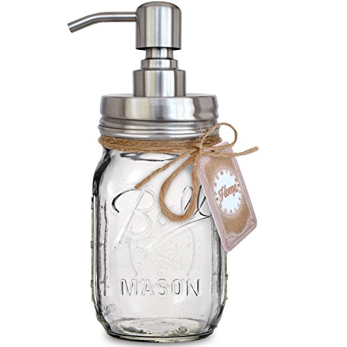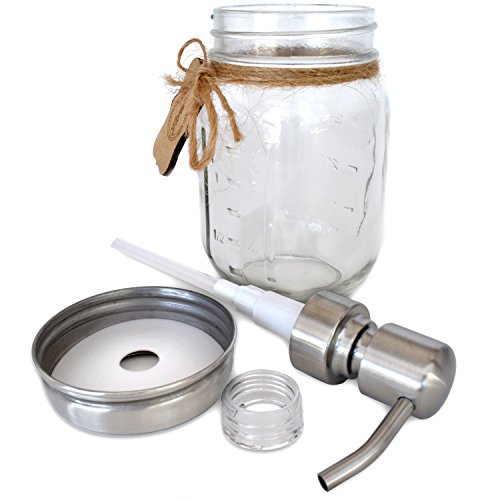 Rust Resistant, 304 18/8 Stainless Steel, Mason Jar Soap or Lotion Dispenser with Iconic Vintage Ball, 16 Ounce, Clear Glass (Silver, 304 Stainless Steel)