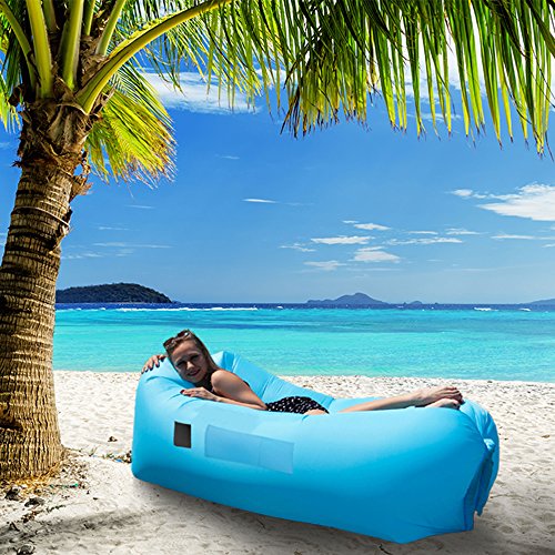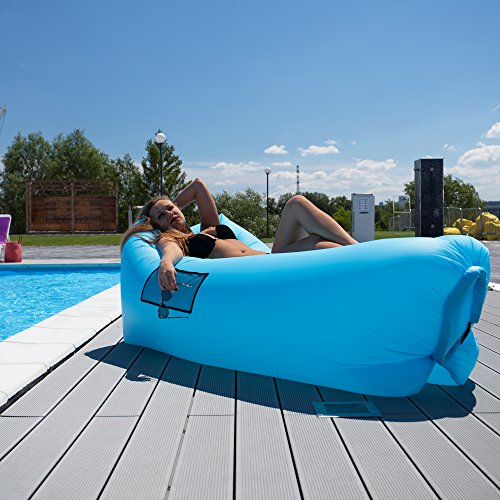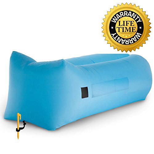 LEXBEX Inflatable Air Lounger, Air Hammock, Air Sofa – 2017 Upgraded Design – Easy Inflation, Better Air Retention, 3 Pockets & Durable Build – Works as Swimming Pool Floats – With Stake & Carry Bag