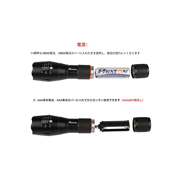 원본상품명: Phixton アウトドア 中電 - XML L2 LED トチ 1200ルメン アルミ 調節可能な焦点距離 防水 18650充電式バッテリ 充電器