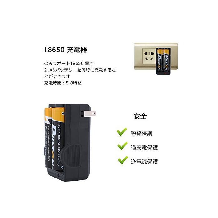 충전기는 110-240V의 만능 타입에,충전 물통의 조절에 의해18650,26650,14500전지에 적합했던 충전 전류의 설정이 가능합니다