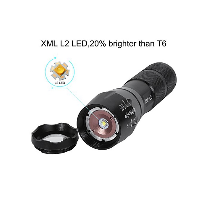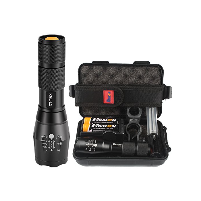 Phixton 아웃도어 회중전등 - XML L2 LED 토치 1200루멘 알루미늄 조절 가능한 초점거리 방수 18650충전식 배터리 충전기