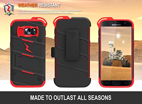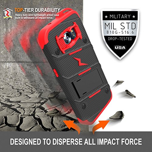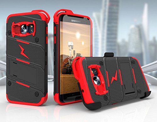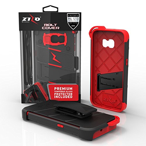 -. Binding : Electronics -. Brand : Zizo -. Color : Black/Red -. EAN : 0888488239866 -. Feature : This product includes a Zizo® 0.33 mm 9H Hardness, Scratch & Dirt Resistant [Tempered Glass Screen Protector]. 100% touch sensitivity with smooth, beveled corners. [NOTE: Tempered Glass does not cover curved edges of the Galaxy S7] / Military Standard 810G Drop Test Certified. The Zizo® Bolt Cover has passed extraneous product tests to guarantee protection for your phone. A [Military Grade] product that surpasses its expectations and guarantees your satisfaction. / The case offers multiple layers of protection: a soft [Shock Absorbing] Tetra Polyurethane with an [Impact Resistant] Polycarbonate shell that clips into the outer locking belt clip with a 360 degree rotatable swivel. / Minimalistically engineered to provide the best aesthetic, protection, and functionality available. A strategically placed [Kickstand] allows you to experience your phone hands-free in landscape format without adding bulk and weight to your phone. / A Zizo® Lanyard (included in the packaging) clips onto the inner tetra polyurethane layer to provide you with a more convenient and quicker way to access your phone. This case is compatible with the Samsung Galaxy S7. -. Label : Zizo -. Manufacturer : Zizo -. Model : BOLT-SAMGS7 -. MPN : BOLT-SAMGS7 -. PackageQuantity : 1 -. PartNumber : BOLT-SAMGS7 -. ProductGroup : Wireless -. ProductTypeName : WIRELESS_ACCESSORY -. Publisher : Zizo -. Studio : Zizo -. Title : Zizo® Bolt Cover For Samsung Galaxy S7 [.33mm 9H Tempered Glass Screen Protector] included |Military Grade| Case + Kickstand + Lanyard + Holster Clip (Black/Red) -. UPC : 888488239866