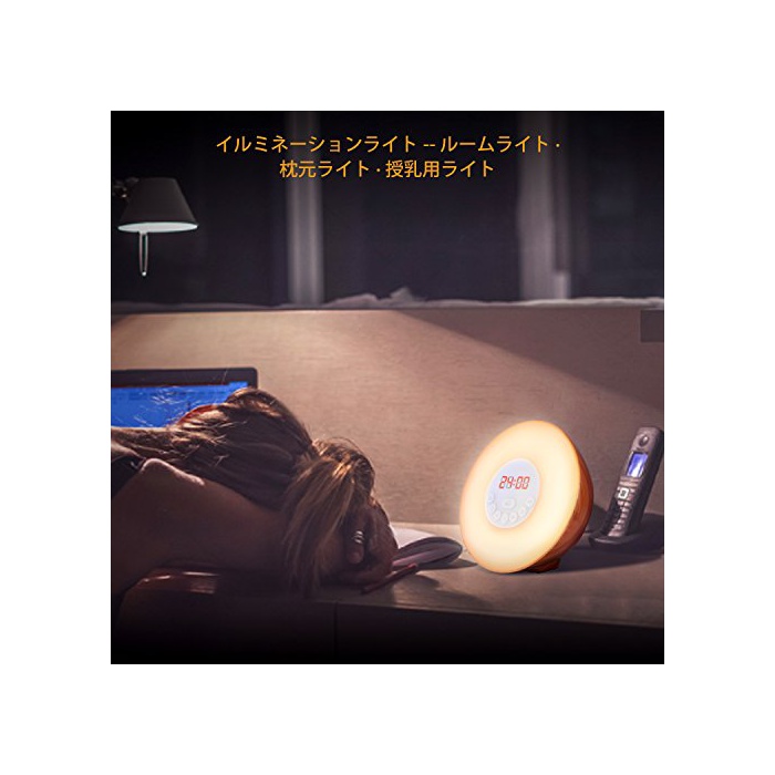 원본상품명: BESTOPE 目まし時計 led時計 デジタル 光+音 朝日模擬光 自然音 FMラジオ 時間記憶 光度調節 7色換 ベッドライト テブルライト usb充電 室 室用