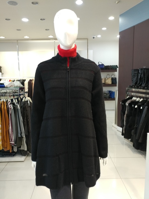 앙고라 스트라이프무늬 앞짚업 니트롱가디건