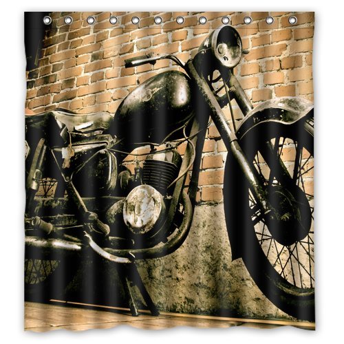 Vintage Motorcycle and House Custom Design Waterproof Shower Curtain Bathroom Curtains Bath Curtain 66x72 inches
