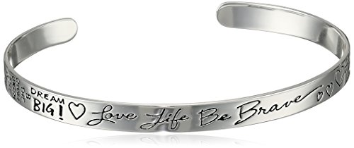 - Feature : Slender sterling silver cuff engraved with hearts and multiple inspirational messages, such as "DREAM BIG!" and "Love Life Be Brave" / Item Length: 6-Inches, Item Diameter: 2.5-Inches / Imported