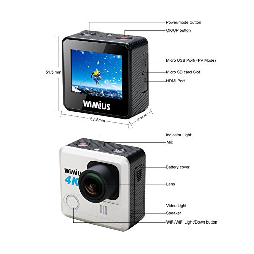 Action Camera 4K Wifi 20MP WIMIUS L1 Waterproof Sports Cam Ultra HD DV FPV Camcorder Sony Sensor & Novatek 96660+ Chipset 2.0'' LCD 170° Wide Angle 2 Batteries With Portable Package (Silver)