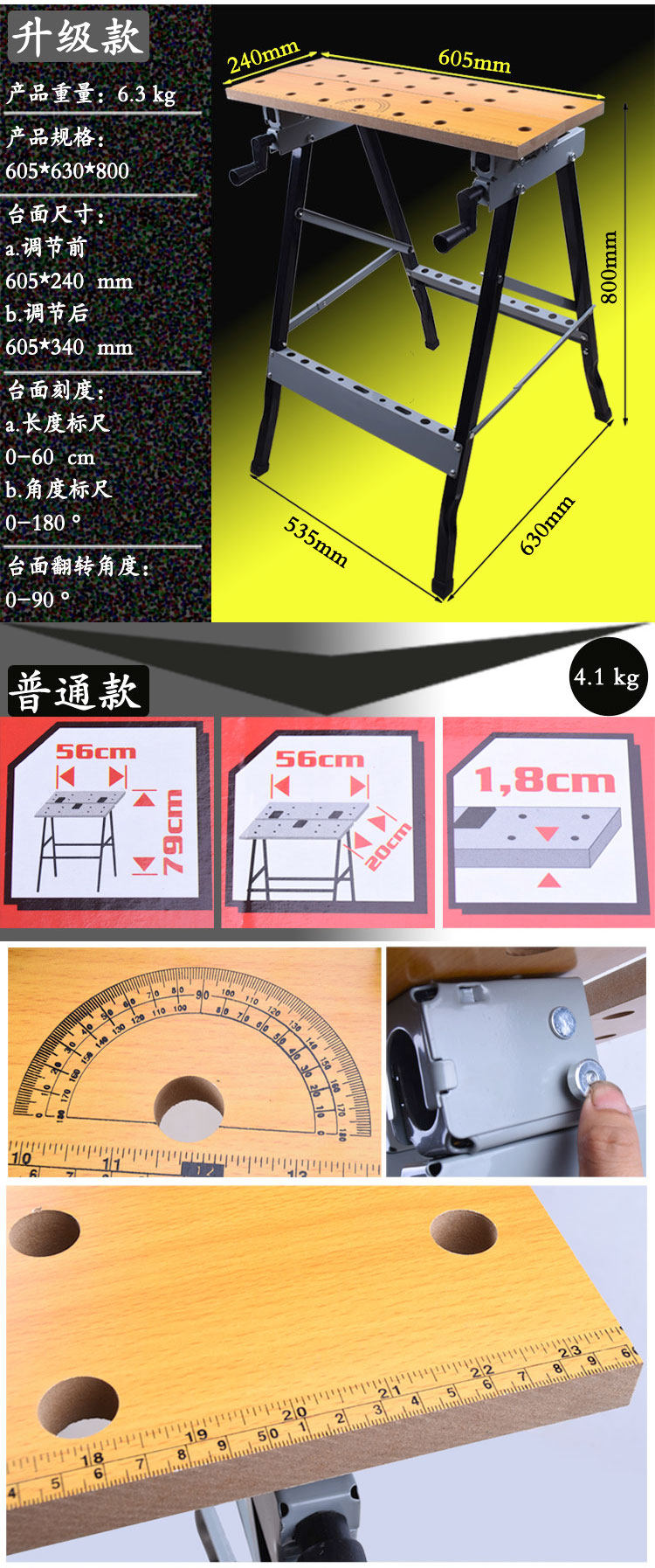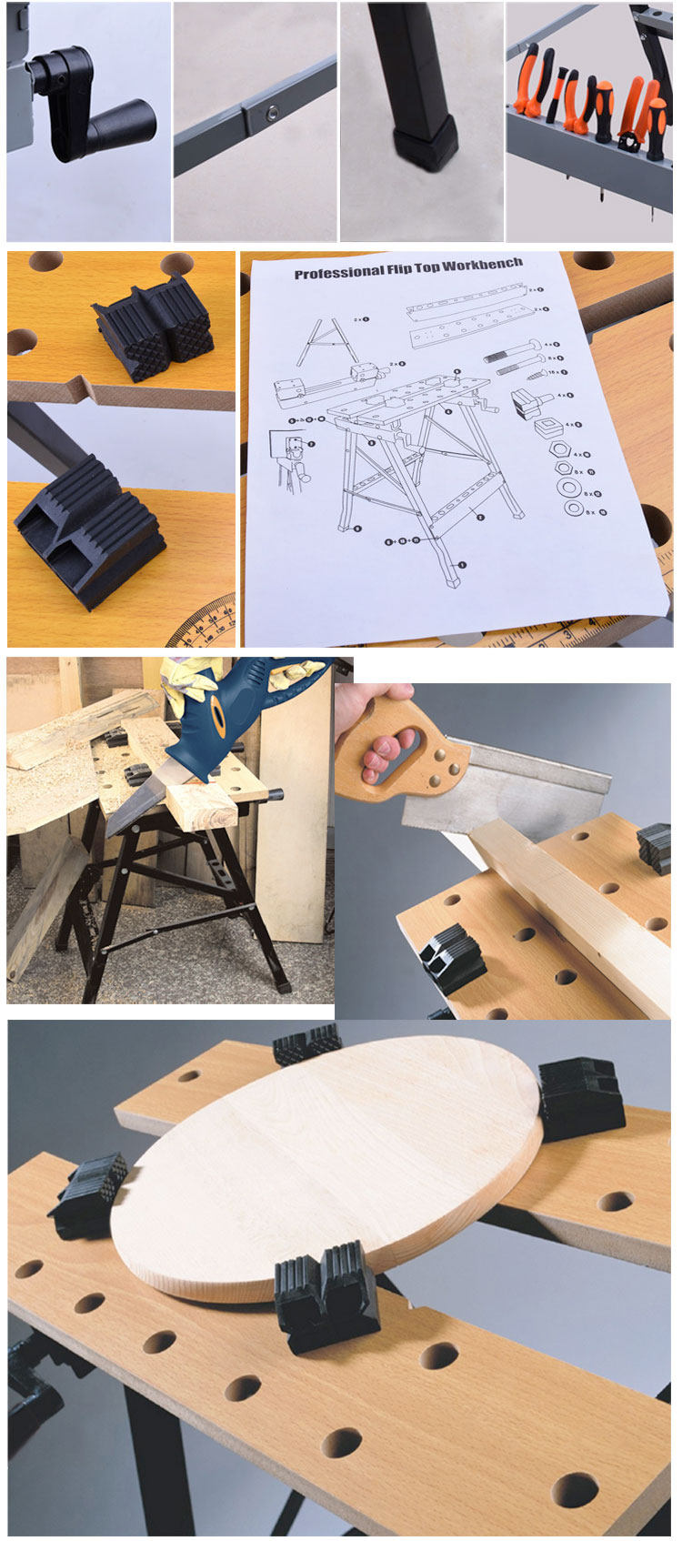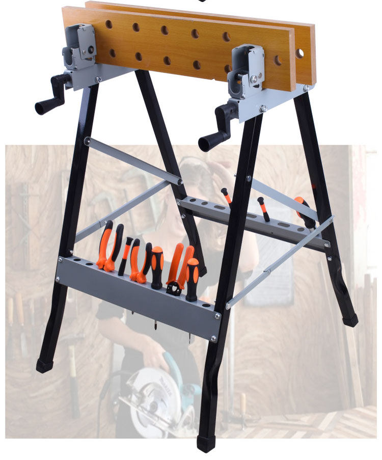 Mainly used for hand tools, electric tools used to form a very convenient operating platform above, through the crank handle can clamp the wood, folder jail. When not in use, you can fold it up on the corner, do not take up space.