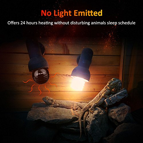ONLY HEAT WITHOUT LIGHT - This ceramic heat emitter bulb only generate heat without the disturbance of an additional light.What’s more, it can offer an 24 hours heat source to constant to heat any reptile.