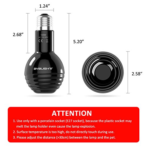 PERFECT FOR PET HEALTH - BYB ceramic reptile heater will also increase the ambient air temperature in the terrarium.Infrared heat penetrates the scales and skin tissue, promoting health and healing as it widens the blood vessels and increases blood circulation.