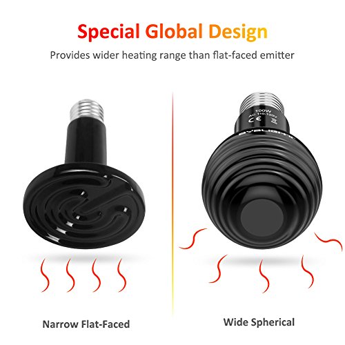 SUPER WIDE HEATING SURFACE - Thanks to its unique infrared heat light bulb shape,this ceramic heat lamp have more wider radiation angle and heating area which means that more pets can enjoy the warm.
