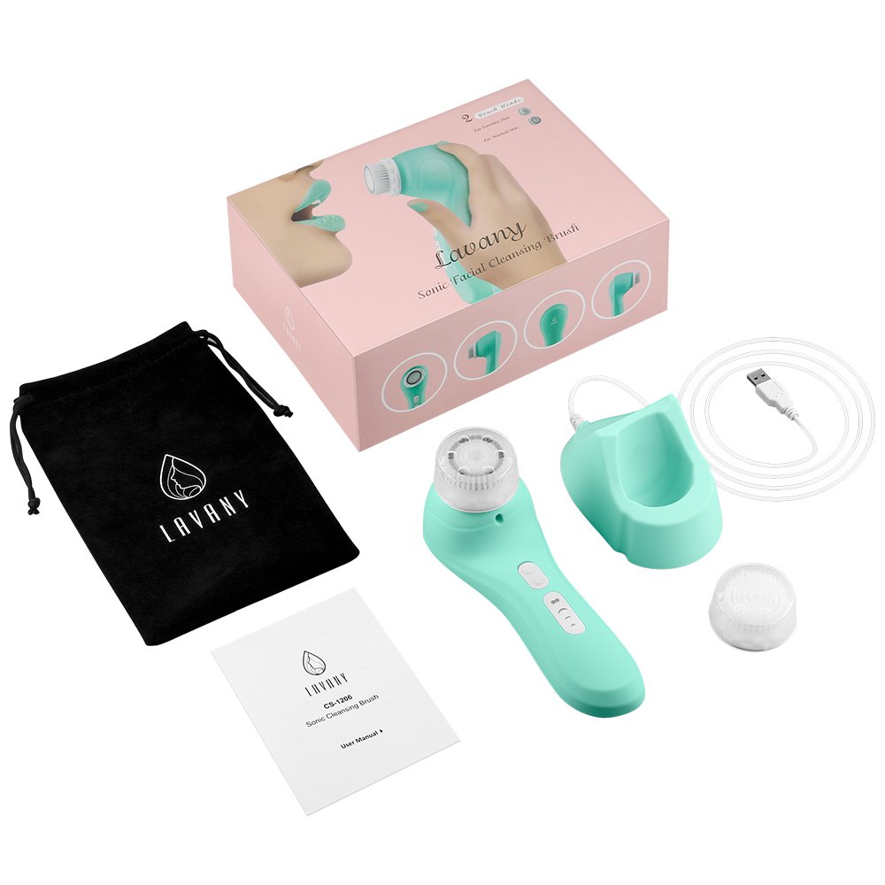 Lavany cleansing brush removes dirt from the back of pores using high frequency sound waves.