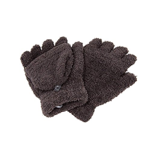 Package Including 1 x Half Finger Gloves Winter Warm Fingerless Gloves Soft Coral Velvet Mittens Short Gloves Hand Warmer Costume Christmas Gift for boys Girls (Coffee) 0
