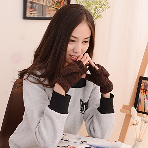 Feature - Color: Coffee. - Material: Coral fleece. - Size: About 15 x 2 x 1cm/5.9 x 0.8 x 0.4inch. - Made of premium material, the gloves are soft, comfortable and skin-friendly. - Easy to wear and remove. - Thick design can keep your hand warm in cold weather. The stylish and popular half-finger design make you even more fashion in winter. - Perfect for texting, using a tablet or computer. - An awesome Christmas gift, birthday gift, New Year gift, or anniversary gift, etc.
