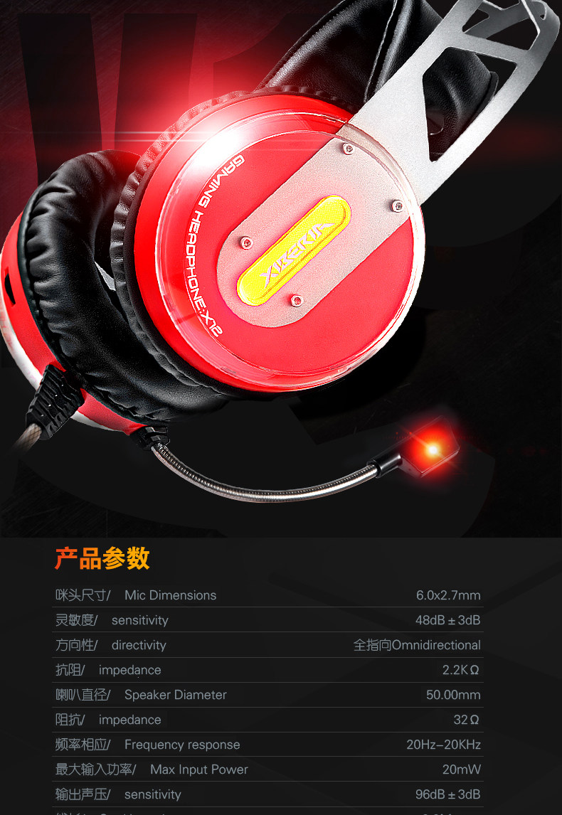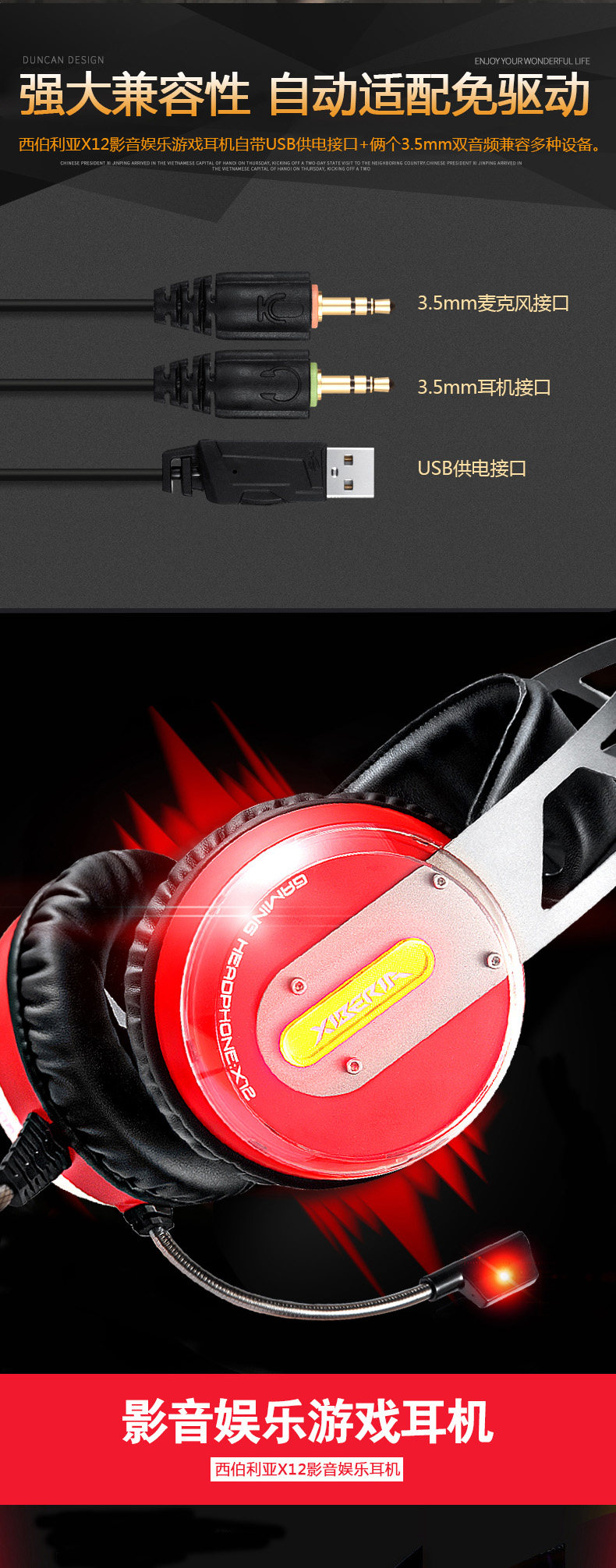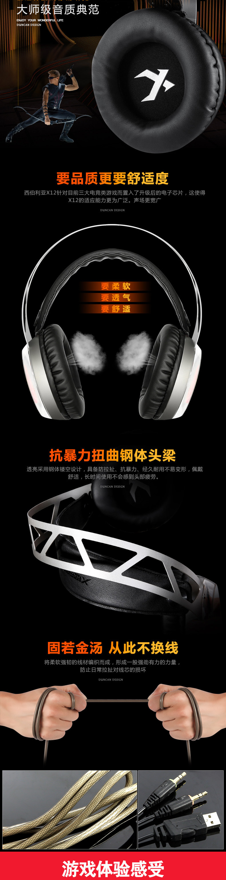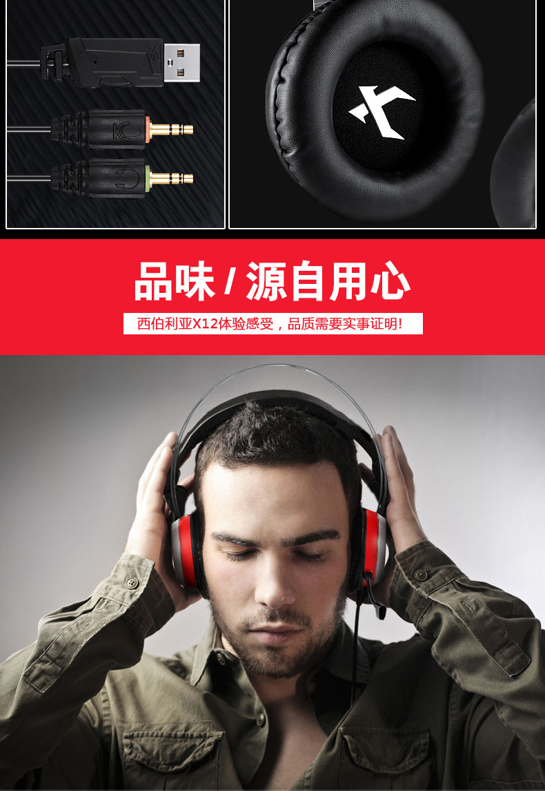 X12游戏耳机头戴式usb台式电脑电竞耳麦带话筒CF重低音
