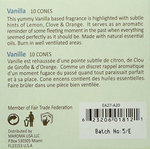 Maroma Eda Cone Incense, Vanilla, 10 Count