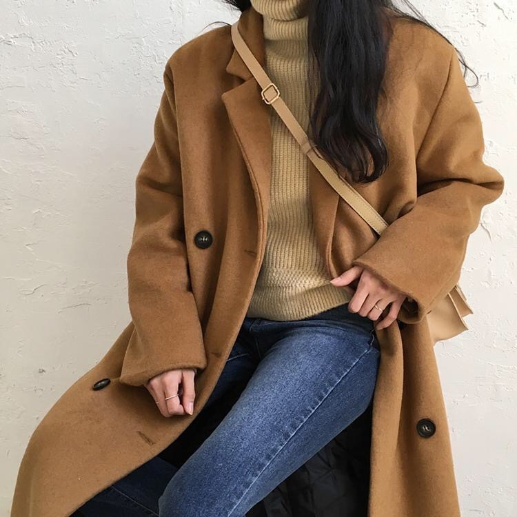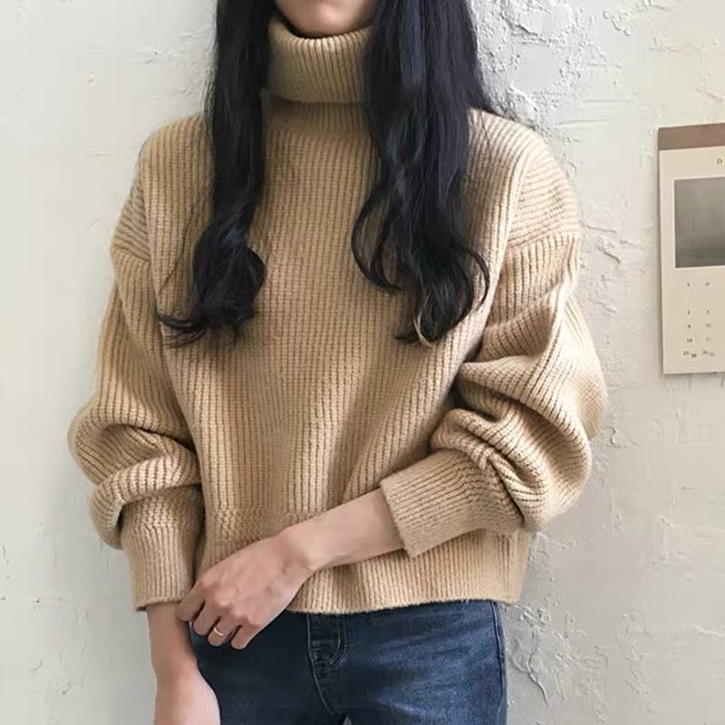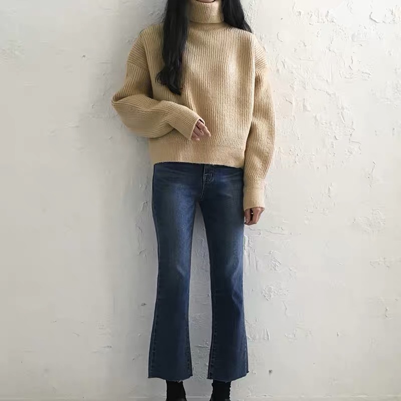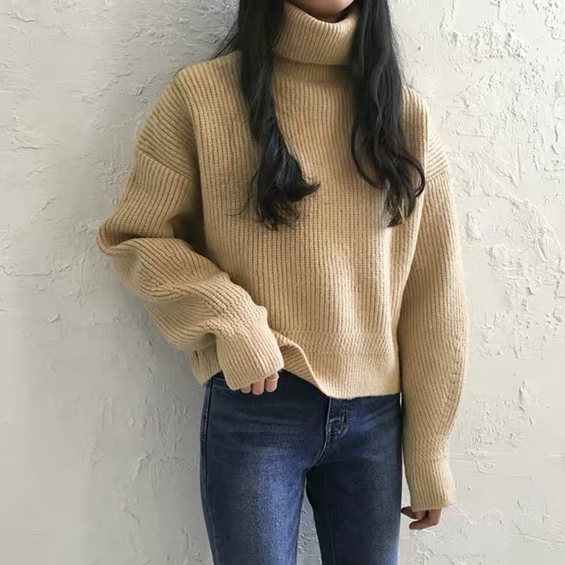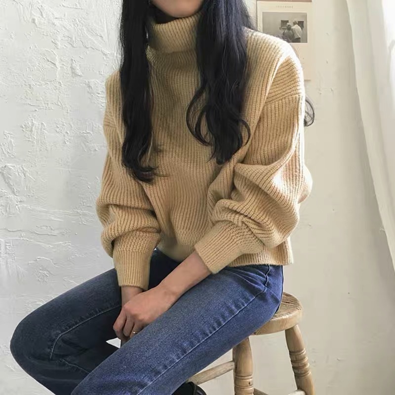 シンプル ニット トップス 無地 ハイネック リブニット