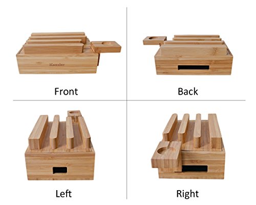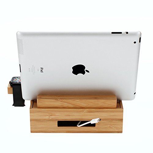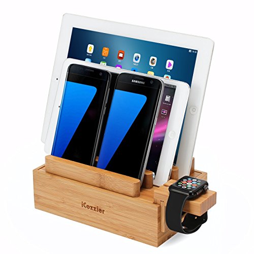 iCozzier Mini Bamboo Watch Stand Universal Multi-device Charging Station and Cord Organizer Stand Dock for Apple Watch, iPhone, iPad, Samsung Note, Nexus, Samsung Tab, Smartphones, Tablets