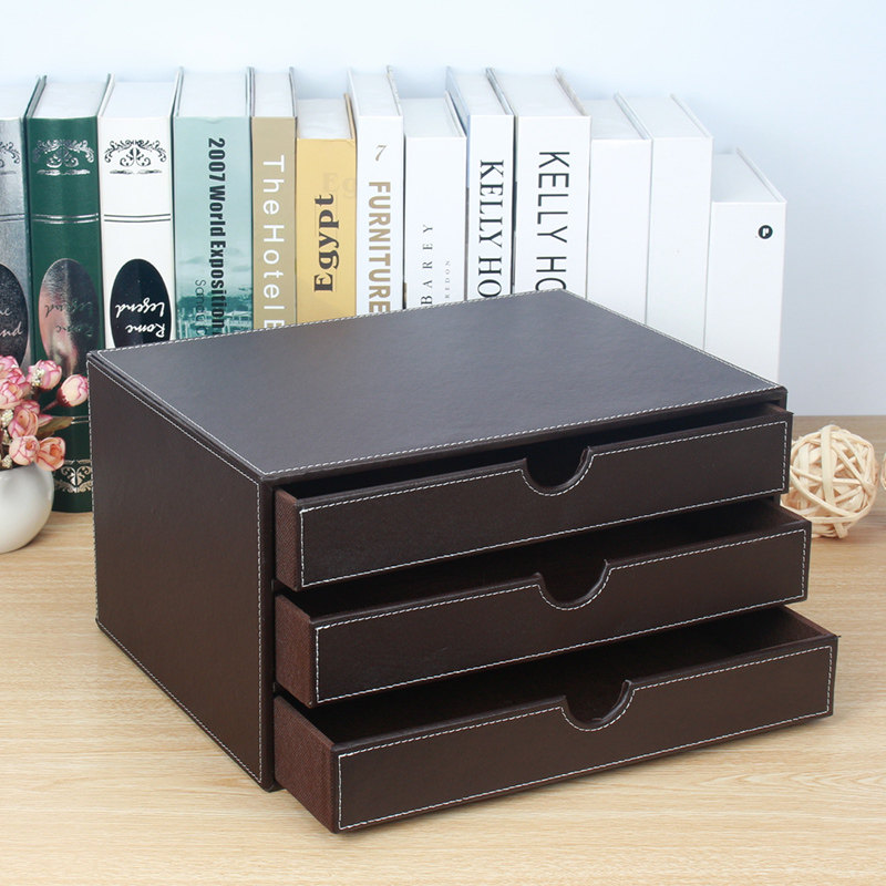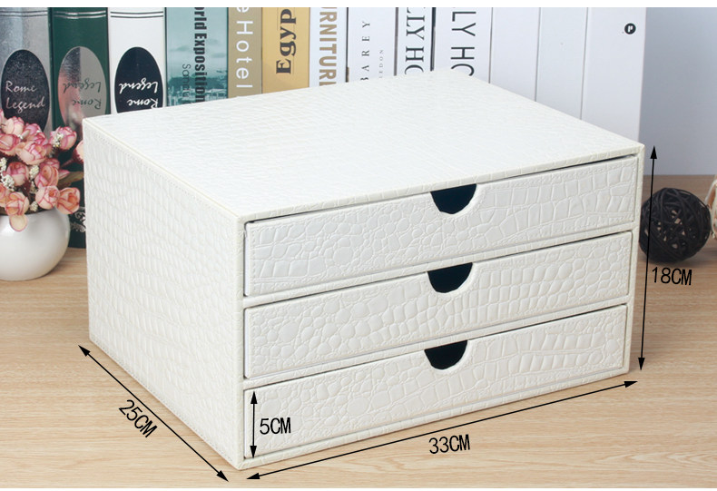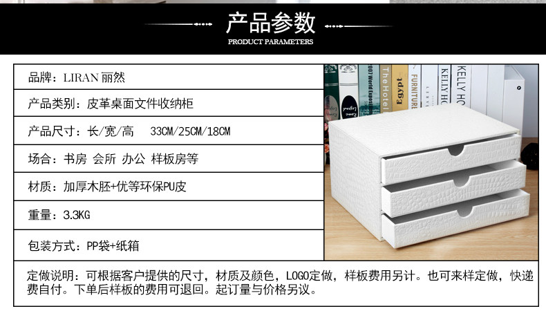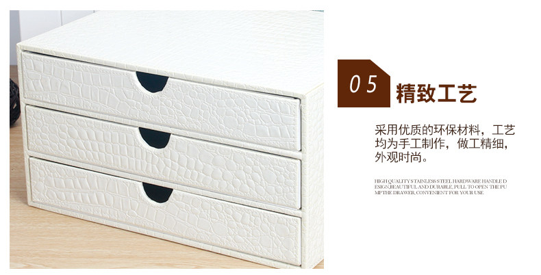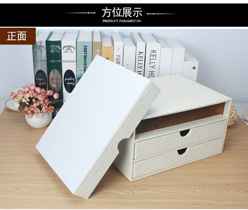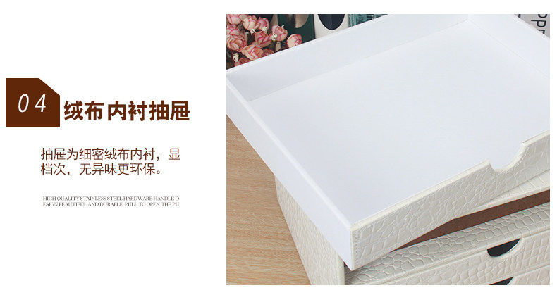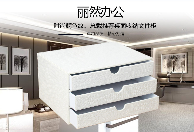 丽然皮革办公室桌面收纳盒 白色桌上文件柜 a4资料柜抽屉式置物架