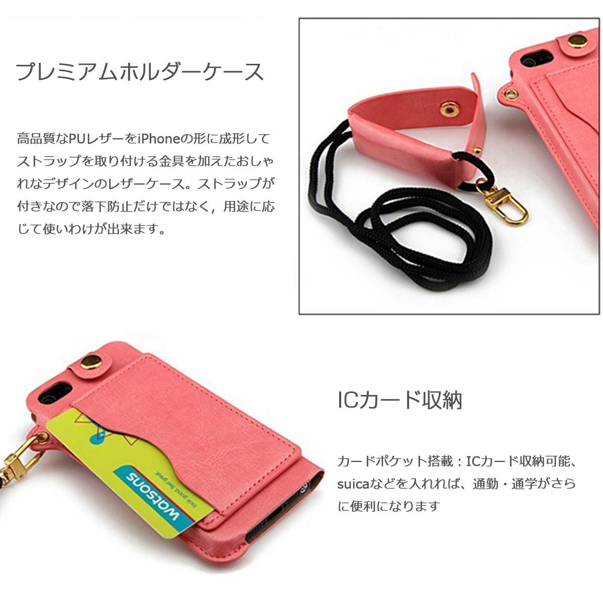 Function: Earphone cord winding, stand, card storage 1 piece, strap hole (about 47 cm: adjustable length and detachable)