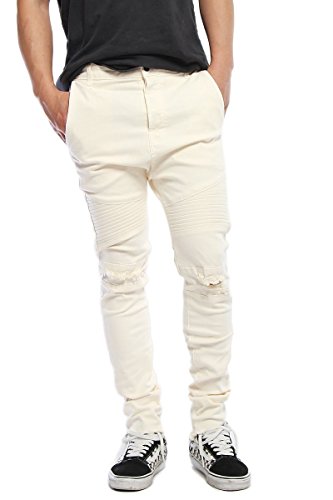 -. Title : TheMogan Men's Drop Crotch Slash Rip Knee Skinny Biker Jeans Distress Moto Pants