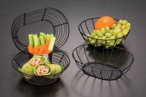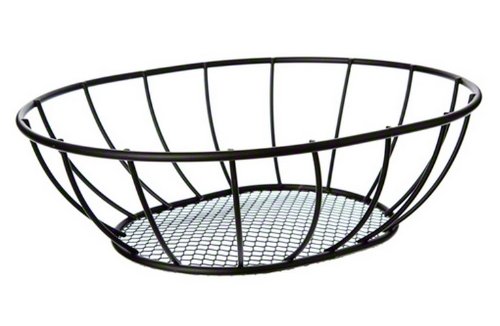 Studio : American Metalcraft Publisher : American Metalcraft Binding : Kitchen Product Description This straight sided round mesh bottom basket is made of wrought iron. Feature wavy or straight side designs. Perfect for displaying and serving anything from fruit to bread. Measures 8-inch diameter by 2-1/2-inch height. 0