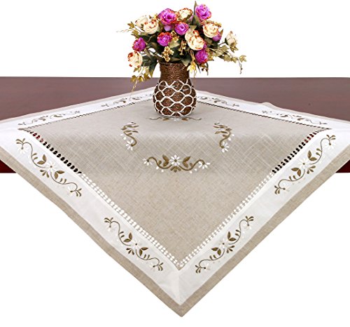 -. Feature : Hand hemstitched natural color and machine washable / 50% linen, 50% polyester, / Beautiful embroidery / Lightly iron; no shrinkle; / No color ran