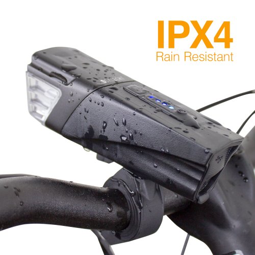 - Feature : 500-lumen LED light - long lasting and highly visible / 4 different light modes to view the path ahead and alert motorists to your presence / Long-lasting light - High lasts 2hrs, Medium lasts 4hrs, Low lasts 8 hrs and Flash lasts 120 hrs on a single charge / 2500mAh power bank - 5V USB charging port charges smartphones, music players, and more / Compact, water resistant, and easy to install